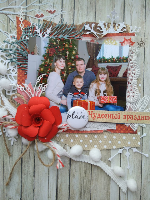 Новый год для нашей семьи - это множество сюрпризов не только для детей, но и для взрослых! Каждый находит свой подарок под елочкой:) И альбом я подготовила к заданию: новогодний с сюрпризами!:) Выполнен из бумаги Glad Tidings от нашего спонсора с использованием ленты, брадс, а так же чипборд от Valeo и "Просто небо".