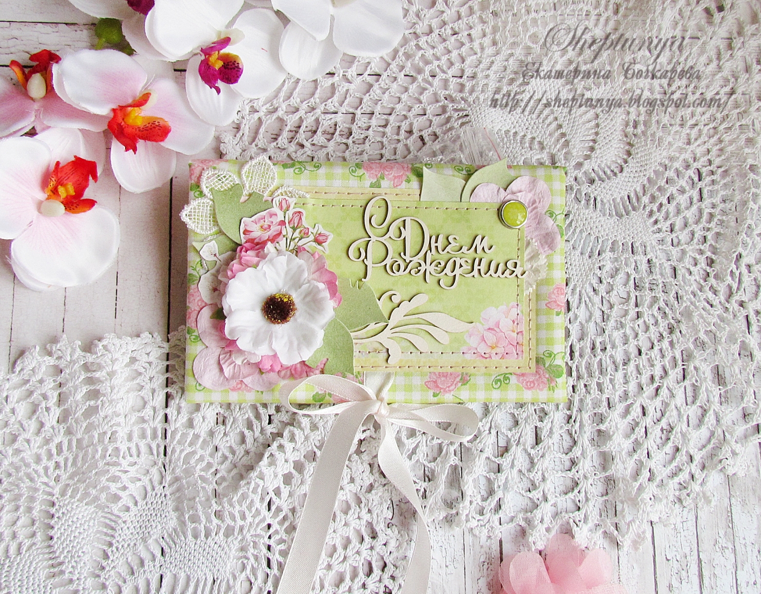 Ну очень у нас вдохновляющий баннер! Только из запасов достала один цветочек, как уже и открытка сама сложилась!) Вдохновилась палитрой, зеленью, цветами и даже силуэтом девушки.